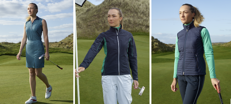 The extensive women’s collection offers a wide variety of comfort combinations with striking patterns and bold colourways throughout the range. A new addition includes the windproof and water-repellent LENE INTERFACE-1 gilet. The extremely breathable garment is constructed from partial stretch Bluesign-approved fabric and Thermore padding to provide ultimate on-course comfort and warmth. Available in two colours and six sizes, the gilet features a full-length zip, front pockets and an elasticated drawstring for the perfect fit. The 100% waterproof AILA is now available in a new Navy/Green colourway, offering an ultra breathable and lightweight GORE-TEX Paclite jacket for the most demanding conditions.