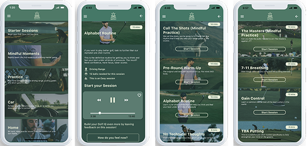 The Golf Guru app gets to know the user and their mental game from the first interaction, helping them establish their ‘Golf IQ’ and then choose guided audio sessions that will increase it and track progress over time.