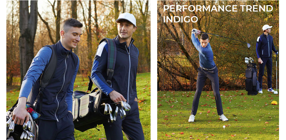 Indigo has been chosen as the trend colour of the current GOLFINO Men’s range; ‘Performance Trend’ provides a ray of hope in the gloomier season. Colour blocking, radiant yellow or smoke, this autumn/winter men can make a statement at all times with a variety of stunning looks appropriate for before, during and after the round. As well as looking the part, this style is complemented by absolute functionality, breathability and complete wearing comfort. A little added extra, the belt buckle comes with a built-in bottle opener.