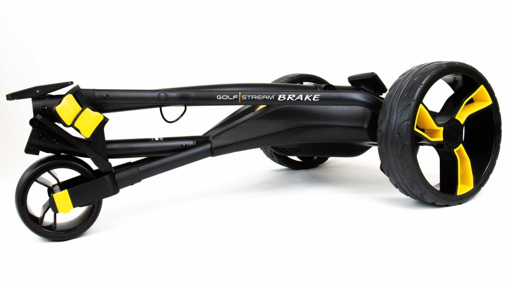 - GX1: Evolving from Golfstream’s entry-level Blue trolley, the GX1 features a sleek new all-black design with blue accents. Enhancements include quick-release wheels with deep treaded tyres and specially designed pull handles on the bag-retaining straps. RRP: From £369