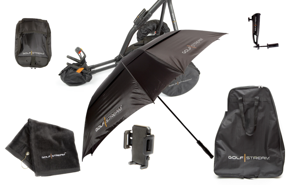 Golfstream also offers a full range of accessories, such as umbrella holders, drink holders, GPS/phone holders, carry bags, and scorecard holders, to further enhance the golfing experience.