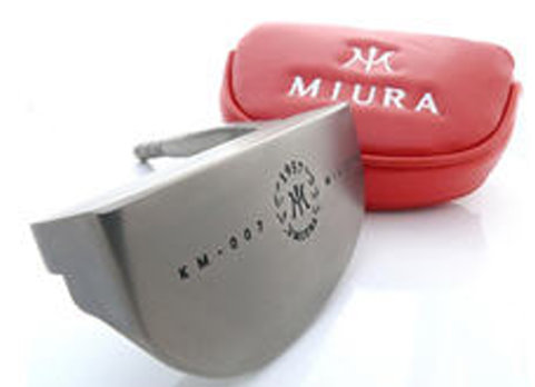 The KM-007 offers a more face-balanced option within the Miura KM putter line. The KM-350, a heel-shafted model that is relatively short heel-to-toe, appeals to players with more of a fan-shaped putting stroke. The KM-005 (350g head weight) and KM-006 (370g), whose shaft intersection point is closer to the center of the putter face, are “quarter-hang” models balanced mostly for back-and-through swingers. The 007 will work well for that kind of stroke too. alt=”km007 with cover” border=0 name=ACCOUNT.IMAGE.421 v:shapes=”_x0000_s1027″>