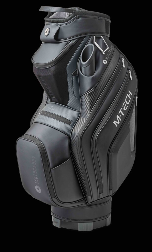 Combining top-quality materials with luxury finishes, the new M-TECH cart bag is styled to complement any Motocaddy electric trolley, not just the premium trolley of the same name. Incorporating cutting-edge Carbon design and wide-ranging features, the new M-TECH bag includes 14 full-length dividers, a jumbo putter well, plus Chromed zip pullers and accessory hook.