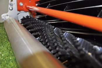 Traditionally, Jacobsen’s turf groomer has been designed with a patented interlocking system with the front roller, allowing for a shorter roller base and providing a class leading ability to follow ground contours on undulating greens. Incorporated into the new design is the option to increase the roller base by the addition of a smooth roller, ideal for conditions when the turf is under stress.