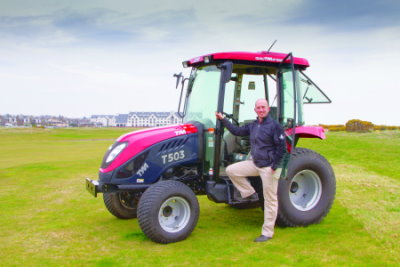 Image caption: Sandy Reid, Links Superintendent at Carnoustie Golf Links, with the club’s T503 TYM compact tractor.