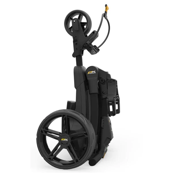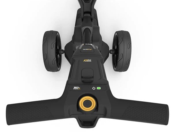 These include a new single LED on/off indicator, low-profile sports wheels, a pause-and-resume speed controller, a height-adjustable soft-touch handle, and an anti-tamper dial control prevents any accidental trolley activation. Additionally, the handle includes a scorecard and pencil holder for easy access during play.