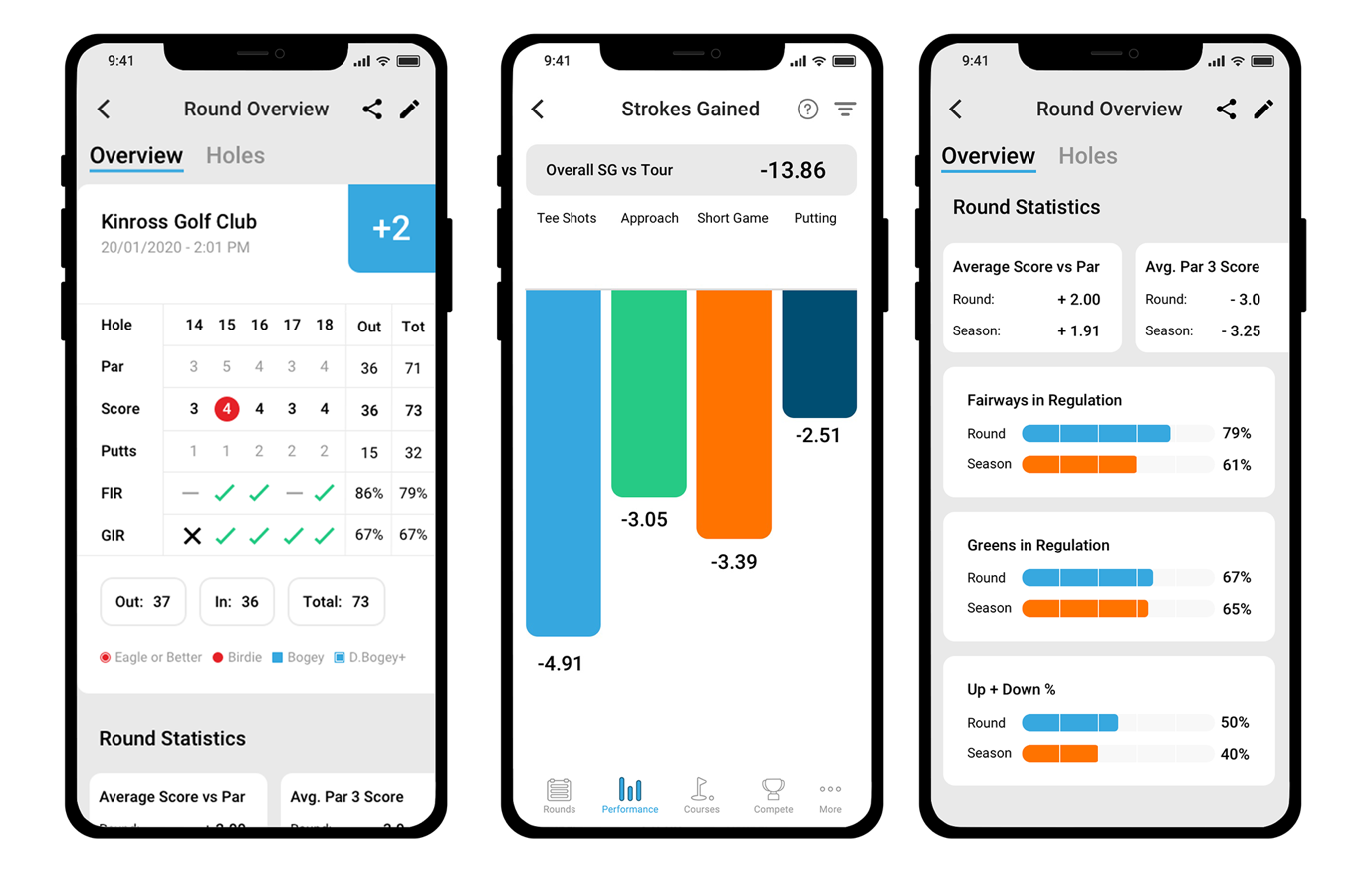 Strokes gained is a way of analysing where a player sits when comparing every aspect of their performance with players in the rest of a dataset. This approach to performance analysis will allow Shot Scope users to gain a greater understanding of which areas of their game they may need to work on in order to improve their overall scoring average. It will do this by isolating individual aspects of a player’s game and comparing it to the entire Shot Scope dataset to deliver efficient results.