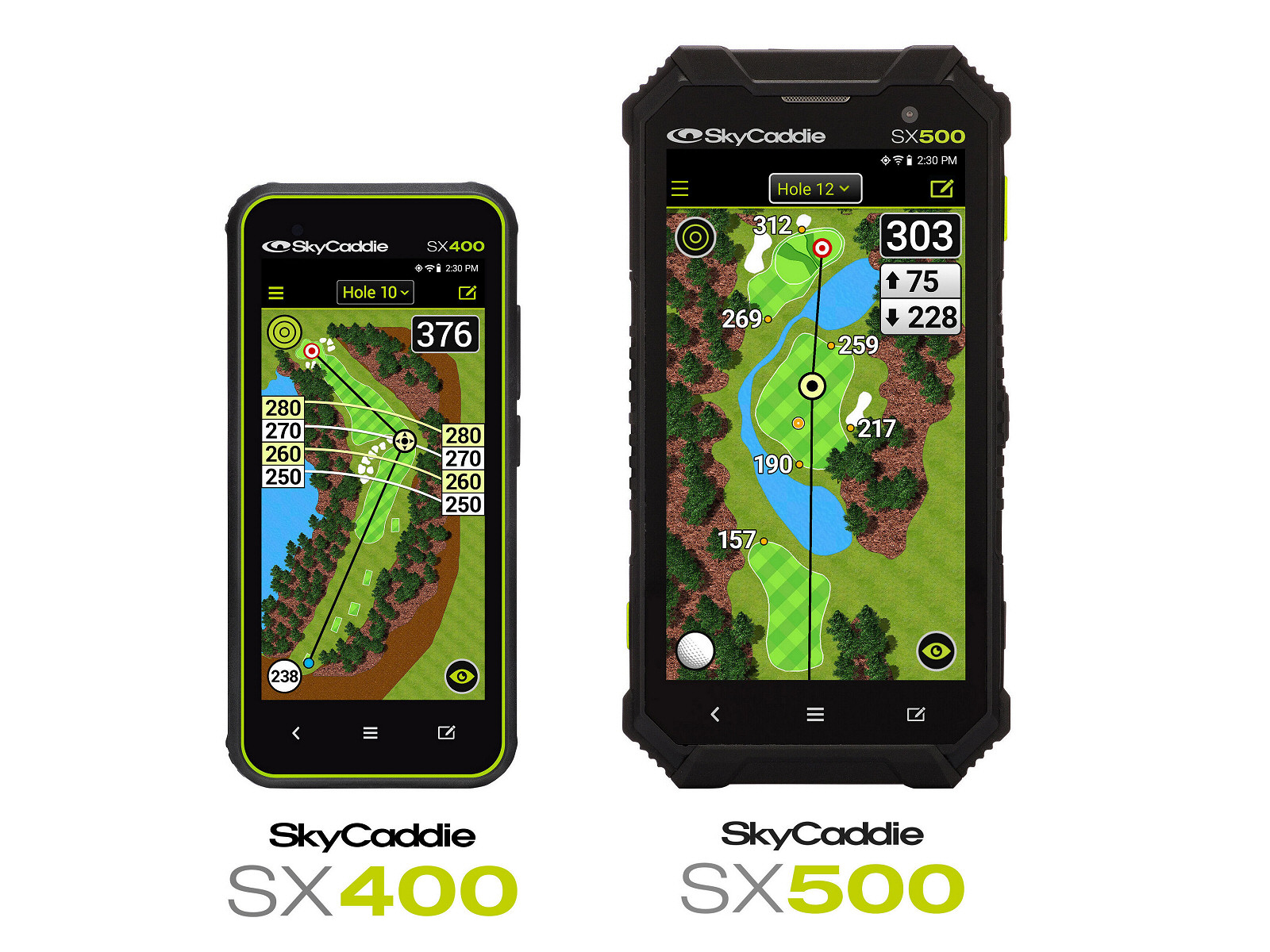 Both the SX400 and SX500 have exclusive-to-SkyCaddie features for accurate distance advice, including IntelliGreen Pro which gives a complete view of the green ahead, including major contours; Pin Position, which enables users to pre-load the day’s actual pin positions for laser-beating speed and accuracy; IntelliPath, which shows carries and run-outs along the intended target line; and Dynamic HoleVue, a visual display of the hole ahead which enables users to zoom in to see distances to up to 40 pre-loaded target points per hole, or to pick out precise yardages to chosen targets.