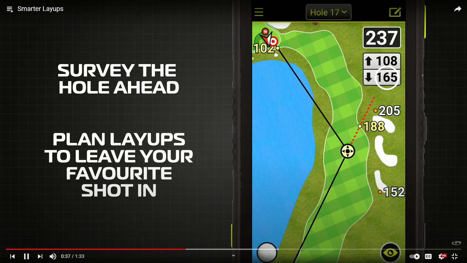 SkyCaddie Masterclass 3 (93 seconds, The Oxfordshire 17th) shows that if you are laying up, nothing beats a SkyCaddie – especially when you don’t have ideal line of sight. In seconds, your SkyCaddie does the layup maths for you.