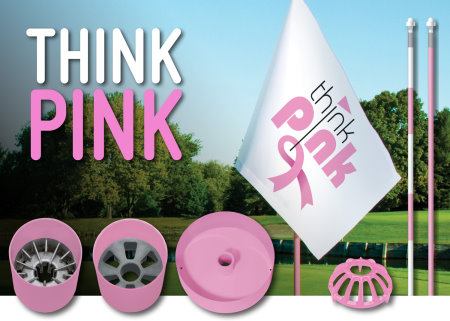 “Think Pink” event flags feature photo-quality reproduction and can be individually customized for each hole, making them ideal for framing to create a revenue source for charity fundraisers. A portion of the proceeds from the Think Pink line goes to the fight against breast cancer.