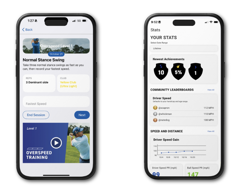 Users can create an account, complete a self-physical assessment and speed assessment, which app algorithms utilize to build an optimal course of action to maximize each user’s speed gains. These personalized plans combine all of SuperSpeed’s training protocols for warm-up, overspeed training, counterweight training, ground force, sequencing, wrist mechanics, ball speed application, grip strength and golf-specific fitness, creating the right training regimen for golfers of all levels, sizes and abilities.
