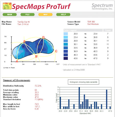 The TDR300 datalogs the readings taken. It can be used with a GPS unit to provide co-ordinates used to produce moisture maps overlaid with spray head locations.