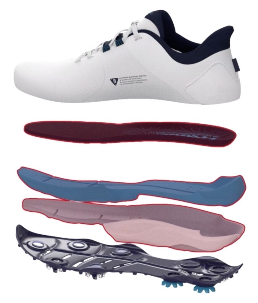 The Swing Support System is made up of three key advancements to take performance to new levels, while being lighter than common tour shoes in the market.