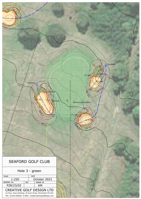- Individual plans can be provided for every hole on the golf course at A4 or A3 size, at an agreed scale, with a grid superimposed if required to make measurements easier. Normally a space for notes and annotations will be included to the right-hand side of the plan, so it can be used in the field for planning course improvements such as tree work, fairway reshaping, new tees and paths, bunker alterations, drainage and irrigation installations, etc. Basic information on each hole can be included on the base plans, such as the par, stroke index, and the lengths from each of the tee markers.