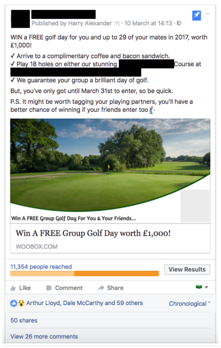 Here’s the advert that generated these results – it was seen by 11,354 golfers, had 50 shares and over 26 comments tagging friends and playing partners. If you want these kind of results, all you need is 3 basic fundamentals: