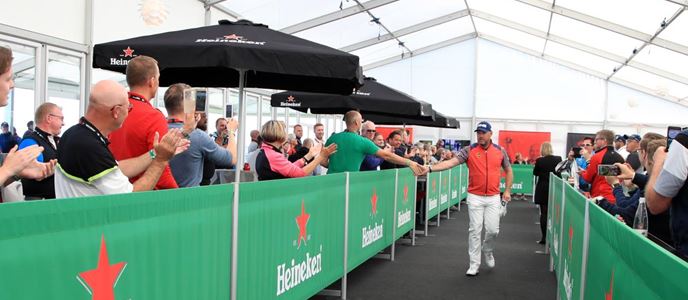 Take the 14th hole at Himmerland Golf and Spa Resort as an example. What could easily have been a routine, 262 yard par four was transformed thanks to the introduction of the Heineken Lounge, where players walked from the 13th green through the hospitality area to the 14th tee box which was incorporated into the structure. The result was a terrific atmosphere for the fans and the creation of some memorable content from many players, most notably Jamie Donaldson and Matthew Southgate. It also created some clever brand exposure for Heineken.