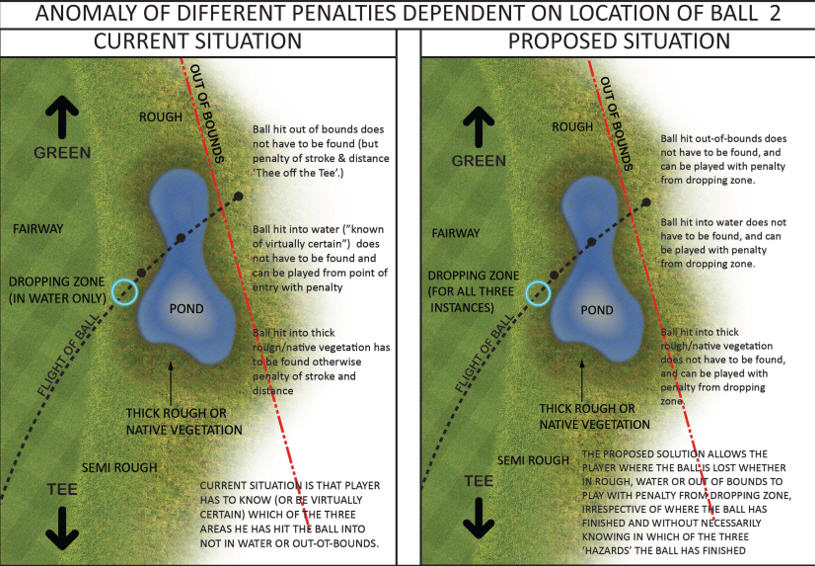 Some might argue that the proposed new rule reduces the penalty for both a lost ball and out-of-bounds. Given the fact that professional golfers in tournaments rarely lose a golf ball due to the assistance they receive from other players, caddies, spectators and the general public there is already an uneven playing field.