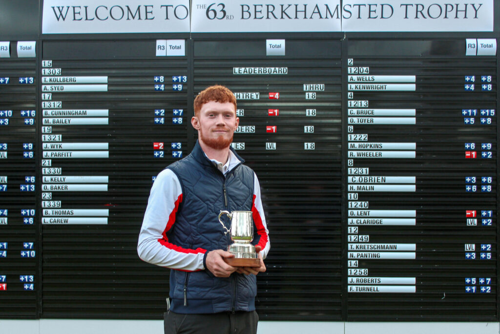 Charlie Daughtrey’s first visit to Berkhamsted Golf Club ended with his name being added to a list of golfing legends, after a three-shot victory in the 63rd Berkhamsted Trophy.