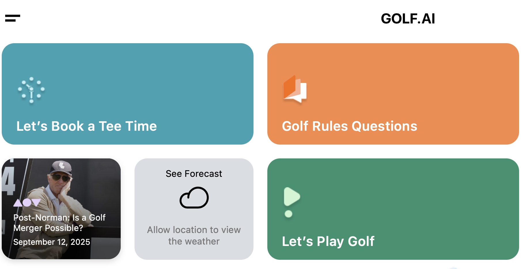 According to GOLF.AI founder and CEO Clive Mayhew, this allows users to bypass the maze of websites, booking engines, and inconsistent booking formats that frustrate golfers today.