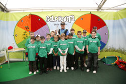 Ian was invited to join the Golf Foundation team and a party of children from Powfoot Golf Club, Dumfries & Galloway, at The R&A Swingzone in the tented village at St Andrews. After taking part in a high-energy Tri-Golf challenge with the youngsters he was presented with the finely crafted Spirit of Golf trophy by Foundation Chairman Charles Harrison, in front of a large audience.