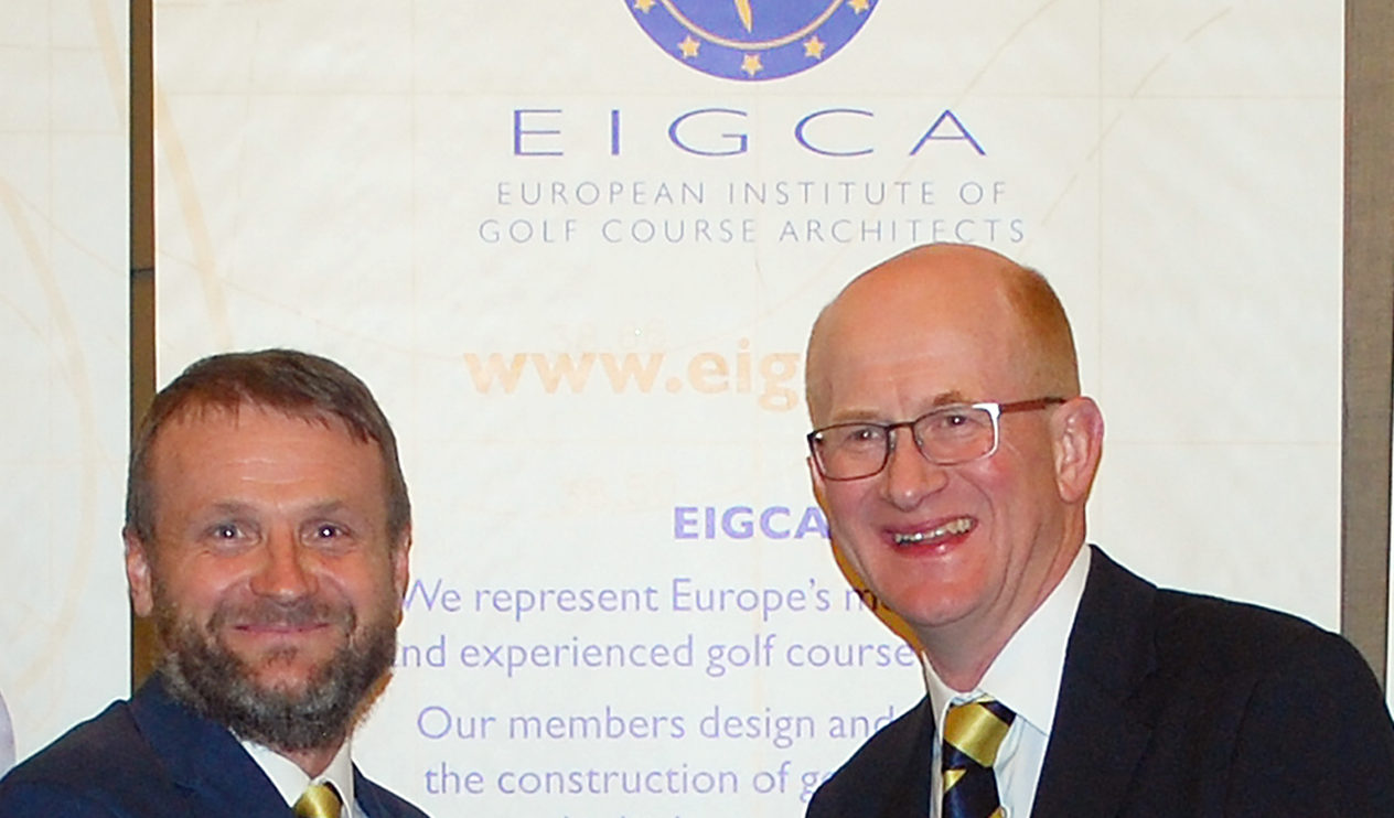 Ross McMurray of European Golf Design has become the 10th President of the European Institute of Golf Course Architects (EIGCA). Officially appointed at the President’s Dinner during EIGCA’s 2017 annual meeting, Ross pledged to continue the legacy of his predecessor, Tom Mackenzie, by promoting the professionalism of the organisation’s members who operate under the EIGCA’s professional framework.