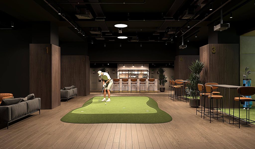 In addition to the five simulators, the facility features a custom putting green powered by PuttView technology. The Augmented Reality system overlays critical information onto the green and tracks the ball in real-time to deliver valuable putting data and insights.