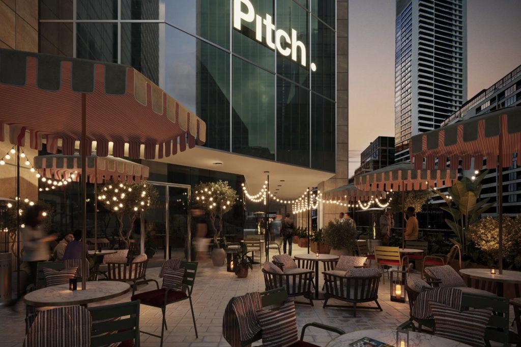 Pitch’s new flagship location at 30 Churchill Place will also feature a world-exclusive retail store, a first-class restaurant on WeWork’s Promenade, live music, shuffleboard, and a waterside terrace.