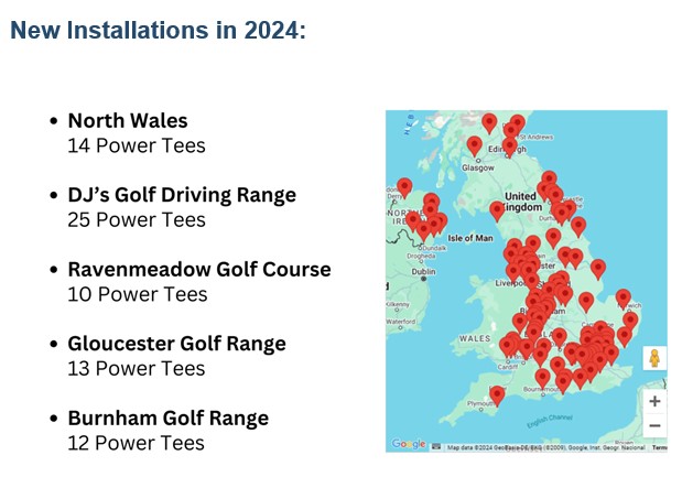 New installations in 2024 so far include North Wales; DJ’s Golf Driving Range; Ravenmeadow Golf Course; Gloucester Golf Range; and Burnham Golf Range.