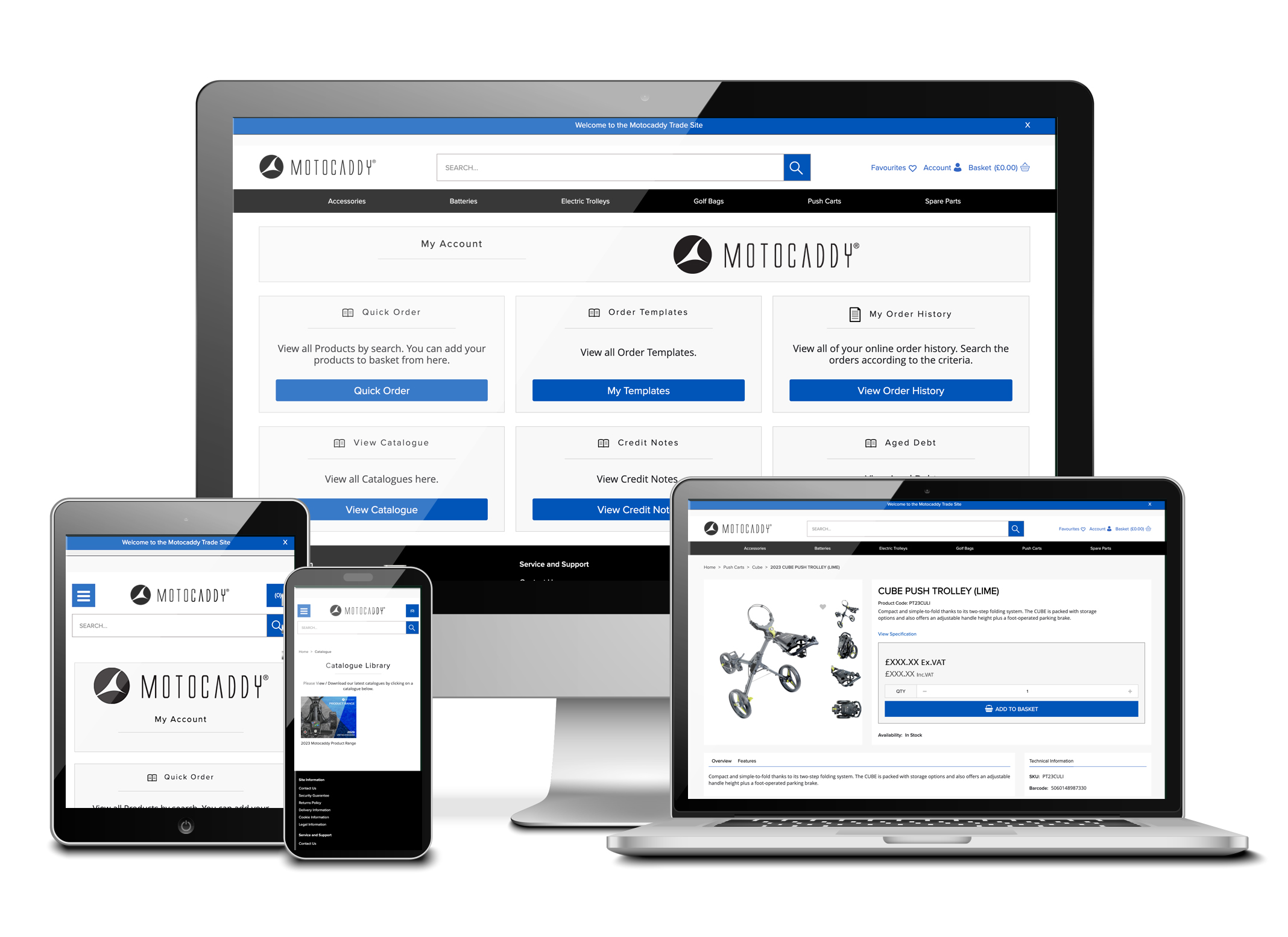 The new Motocaddy trade portal boasts a wide range of features, including in-depth product information, live stock availability, a 24/7 ordering process and a quick product search function. It also includes a customer account dashboard allowing users to view their order history, current balance, past payments and check the status of orders. Customers using the platform will have access to view the full range of Motocaddy products – including golf bags, batteries and accessories – making purchasing a quick and easy process, with browsing optimised for mobile and desktop devices.