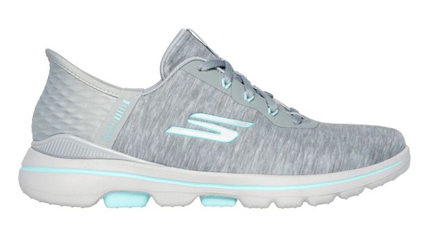 Skechers GO GOLF GO walk 5 Slip-ins are here to help you feel and look your best out on the course with a heathered jersey upper and supportive heel clip. This water repellent design also features Skechers Hands Free Slip-ins technology and our exclusive Heel Pillow locking your foot into place. Designed with lightweight and responsive ULTRA GO cushioning, Skechers Goga Max insole technology delivering high rebound cushioning, and Goodyear performance outsoles for enhanced traction, stability, and durability, this pair is excellent value.