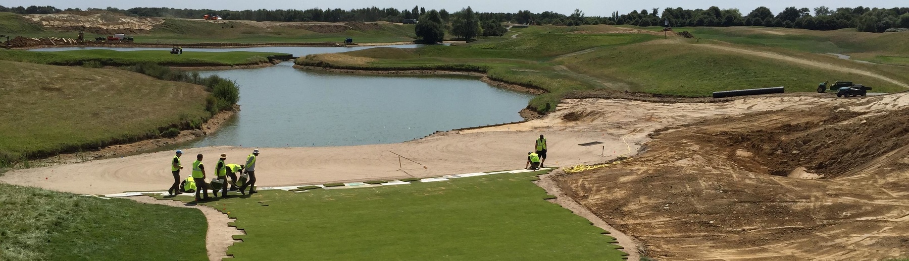 In terms of the build, grandstands – the seats are already fitted into many of them – and hospitality units will be completed in the next couple of weeks and the venue will then be trimmed with all the Ryder Cup logos and branding.