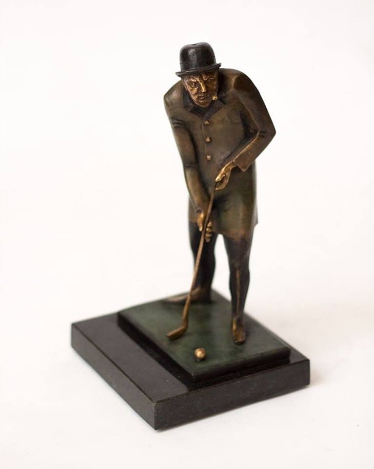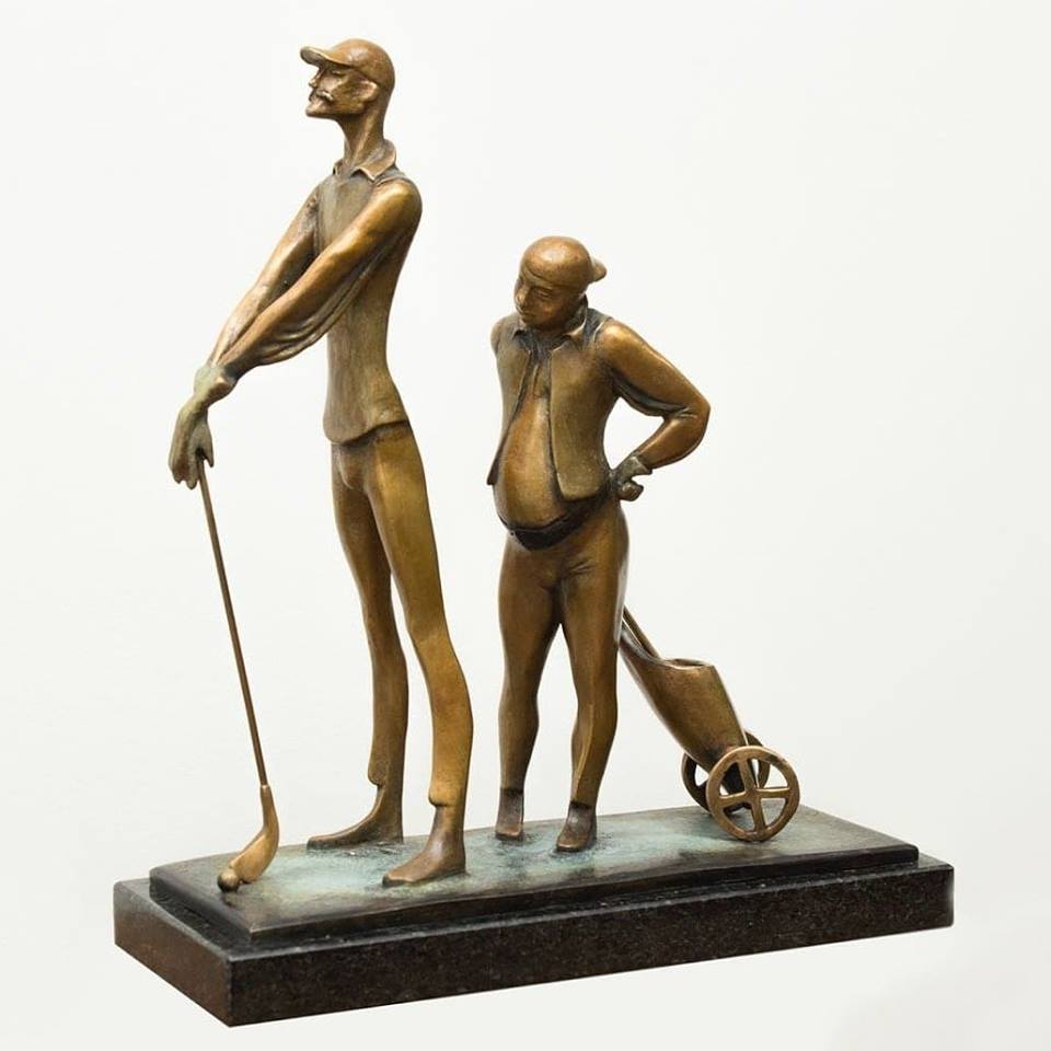 The first works of this new direction are bronze sculptures by the famous sculptor Aramare Vecchio who presented his idea of how The Queen, Churchill, Sherlock Holmes with Doctor Watson, and Don Quixote with Sancho Panza would play golf.