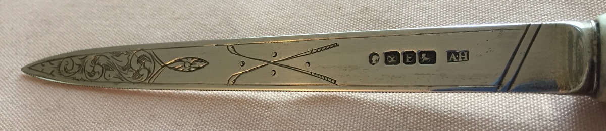 - Unique Early Silver Fruit Knife dated 1848 With Cross Long Nosed Clubs & Golf Ball Decorations (pictured top)