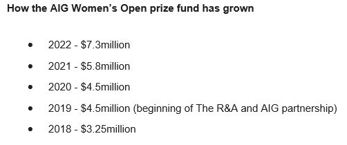 The R&A and AIG continue to increase the prize fund for the AIG Women’s Open with the winner set to receive USD1.095 million.