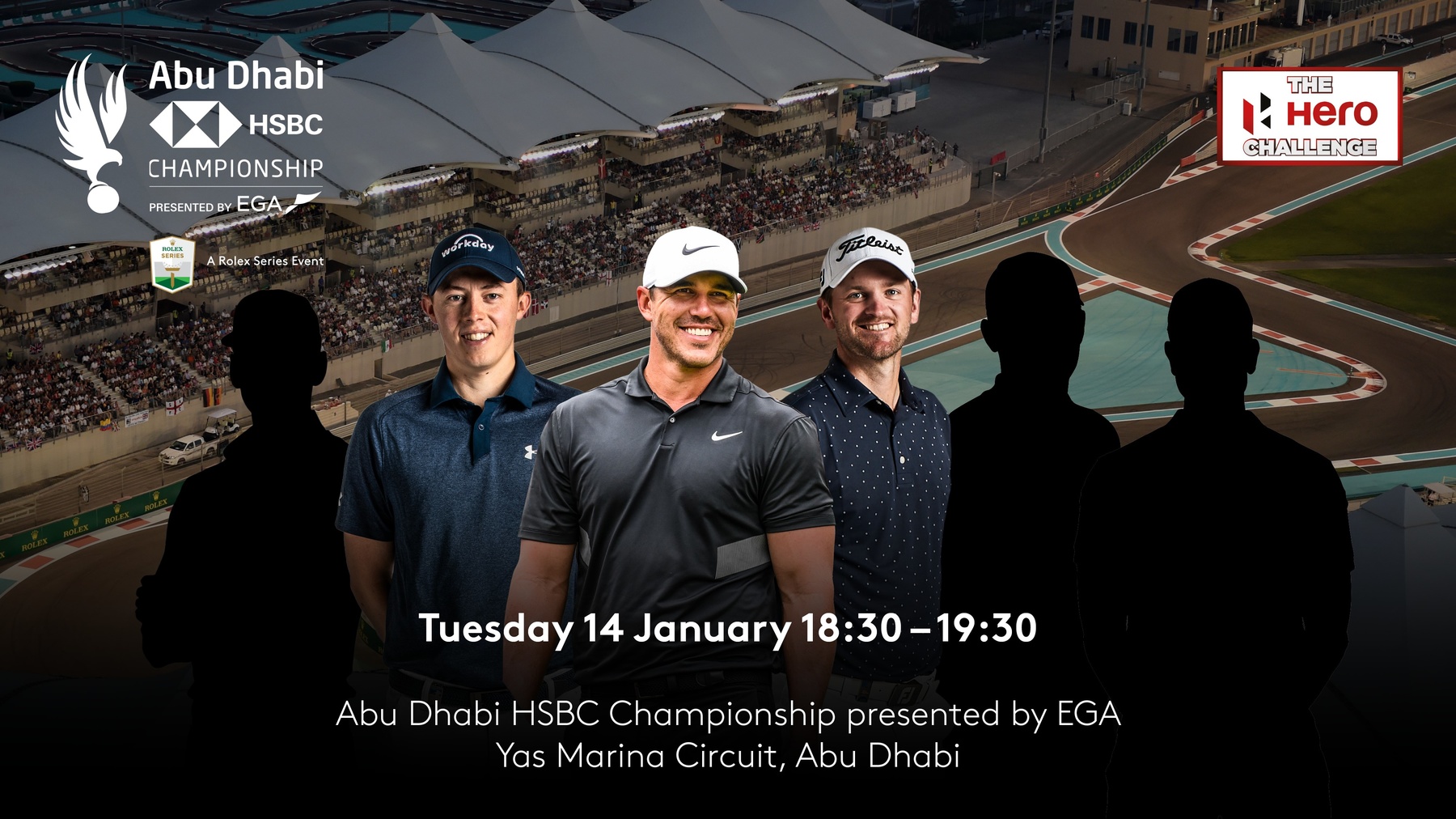 World No.1 Brooks Koepka will be joined by European Tour stars Bernd Wiesberger and Matthew Fitzpatrick in the first Hero Challenge of the 2020 season, hosted at Yas Marina Circuit on January 14, ahead of the Abu Dhabi HSBC Championship presented by EGA.