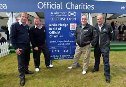 First Minister of Scotland Alex Salmond, Martin Gilbert, Chief Executive of Aberdeen Asset Management and George O’Grady, Chief Executive of The European Tour, joined the two Official Charities of the event during the final afternoon at Castle Stuart Golf Links near Invernessas a tremendous week of fundraising for the two local charities was drawing to a close.