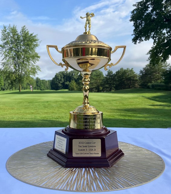 After three gruelling days of golf played at times in 30+ degree heat, the USA Team, headed by Michigander Kim Moore, finished 12.5 Pts to 11.5 Pts, to lift the prestigious trophy named after Scottish disabled golfer Billy Cairns. However, it was Brandon Williams who had the honour of sinking the winning putt to claim victory.