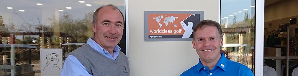 Publisher of worldclass.golf, Michael Lenihan, personally presented director of golf at Aphrodite Hills, Andrew Darker, with a personalised worldclass.golf sign to display within the newly renovated clubhouse, and Darker was delighted to accept the plaque that will take pride of place at the resort.