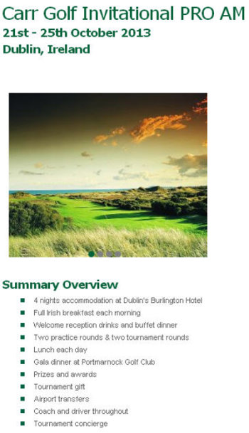 Carr Golf, Ireland’s leading golf company has announced details of an Invitational Pro-Am which will be held in Dublin, Ireland from 21st to 25th October, to celebrate The Gathering.