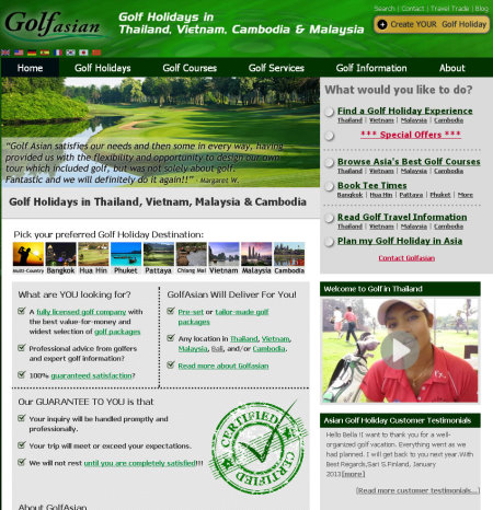 Golfasian, who will enter its 15th year in 2013, has been recognized as the leading golf tour operator in Thailand, Vietnam, Malaysia, Cambodia, Indonesia, Laos & Myanmar. Golfasian is a pure-play golf tour operator providing services to both individuals and groups and acting as the ground handler for more than 50% of the world’s golf tour operators who sell South East Asia.