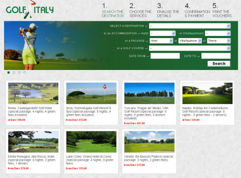 www.golfinitaly.org offers the opportunity to browse and book golf packages to 35 Italian destinations, to organise tee-times at 112 golf courses or choose overnight accommodation at more than 100 hotels, villas and apartments.