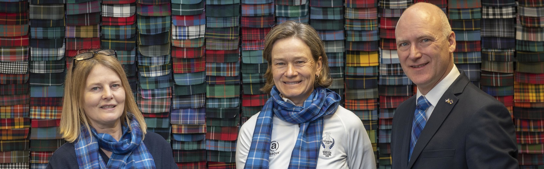 Pictured top: from left Dawn Robson-Bell, Managing Director of Lochcarron of Scotland; European Solheim Cup Captain Catriona Matthew; and Joe FitzPatrick Scotland’s Minister for Public Health, Sport and Wellbeing
