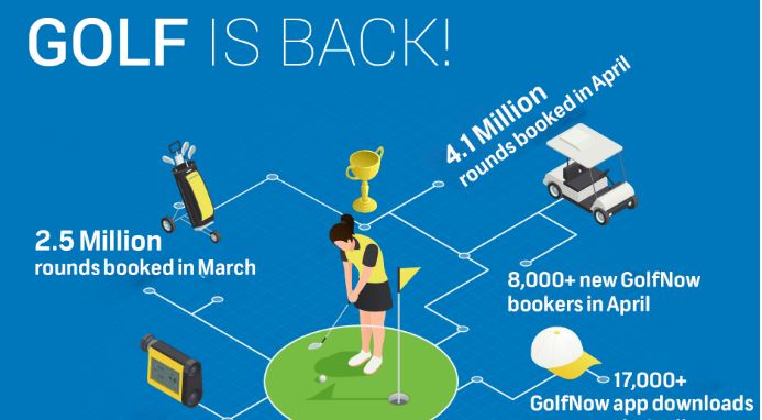April has been a record-breaking month for GolfNow with over 8,000 new bookers, 17,700+ app downloads and 76,000+ rounds booked. This month, GolfNow has generated over £1.8 million in revenue for course partners, thanks to a 77% increase in rounds booked versus April 2019 and a 108% increase in booking value.