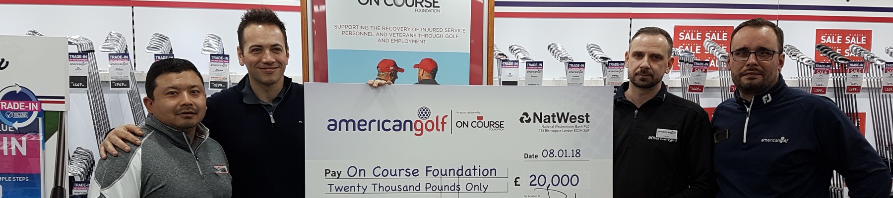 Forces golf charity, On Course Foundation, was celebrating a late Christmas present yesterday as American Golf handed over a cheque for £20,000, raised by its customers over the festive period.