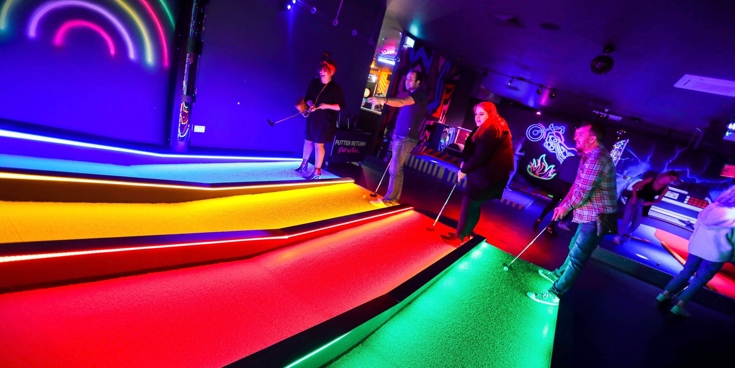 BUNKERS! Swansea features two 12-hole putting courses, as well as offering electro darts, table tennis, food and drinks.