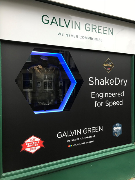 According to owner Bobby Millar, the SHAKEDRY™ jacket has made a real difference to his business this season, especially as it features prominently in an exclusive window display close to the Old Course. “The new SHAKEDRY™ display is a real showstopper and has not only helped boost sales of this amazing waterproof jacket, but other garments in the latest Galvin Green range.