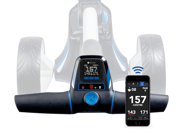 The revolutionary S5 CONNECT, CUBE CONNECT push trolley and the new compact M5 CONNECT can all be synced to the app on any compatible smartphone; allowing the trolley’s digital display to be used in place of a conventional GPS. The free app can also be used independent of the trolley, as a fully-featured mobile GPS device for complete portability.