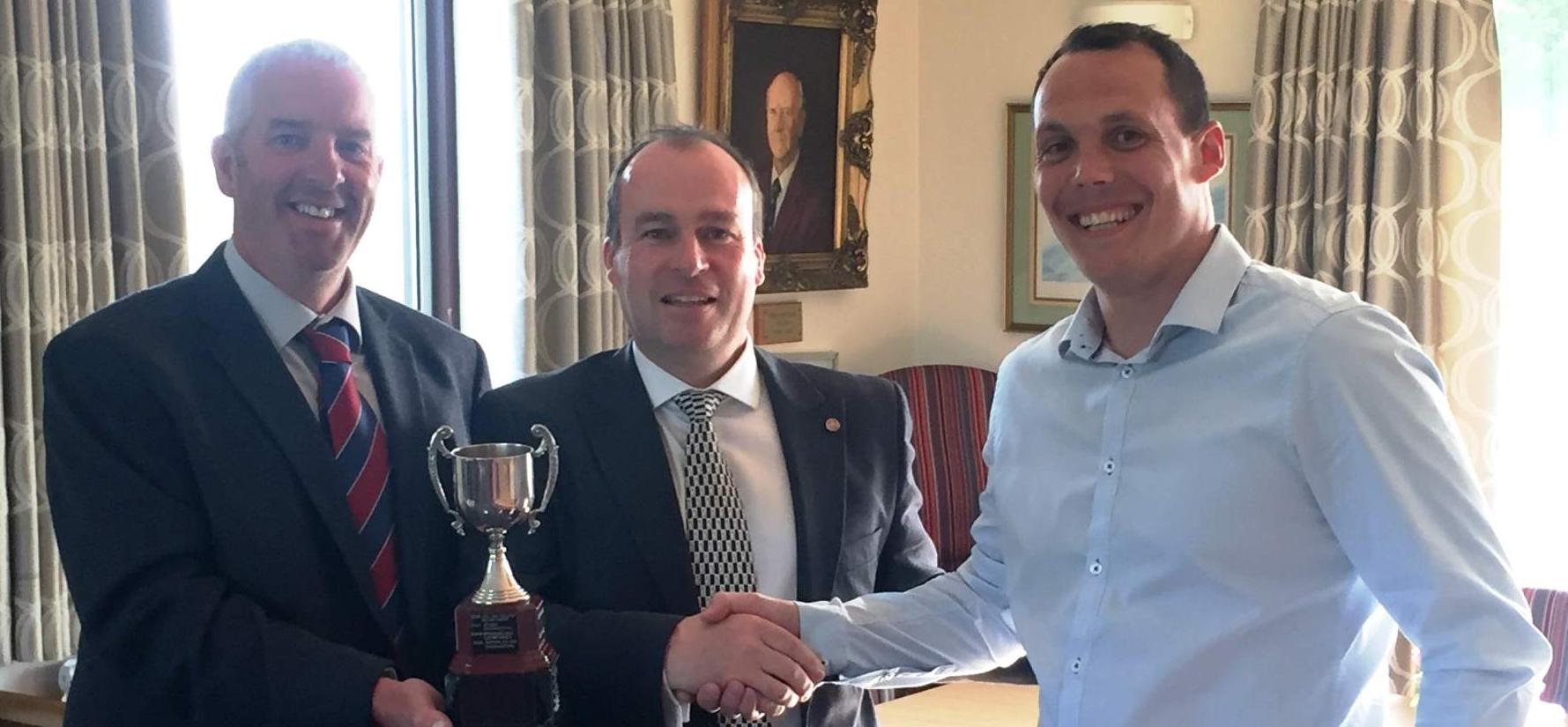 Pictured top: Sean Trussel (centre) is congratulated by Matthew Mears (right) with Mike Cartwright (left)