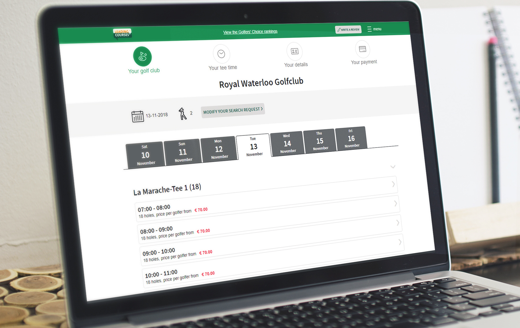 Golfers looking to book a tee time simply have to select the course they want to play, chose a tee time (based on time or price), and book it.