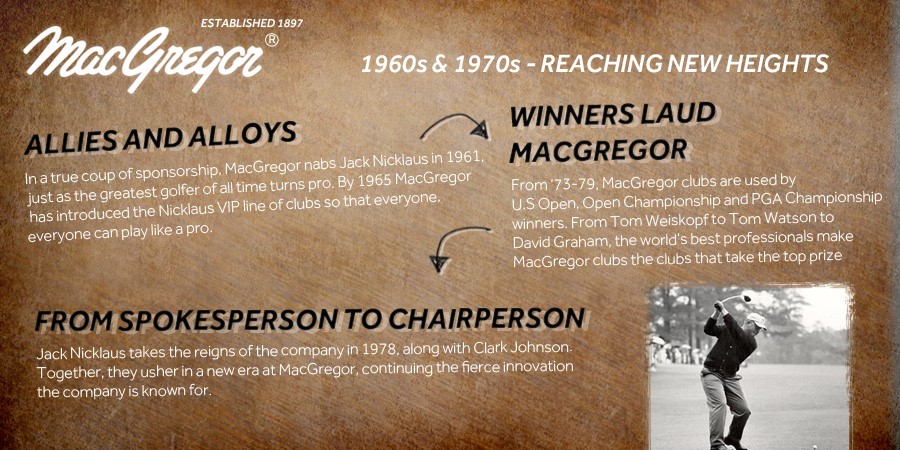 Byron Nelson, Tommy Armour, Ben Hogan, Greg Norman, Lee Janzen, Johnny Miller, José Maria Olazabal, and many others on the list of all-time greats, sit alongside perhaps the greatest of all time, Jack Nicklaus, as players who have trusted MacGregor clubs on the biggest stages in golf.